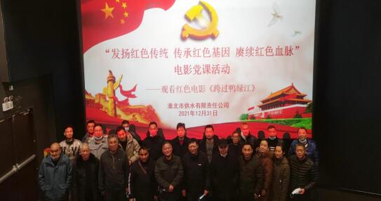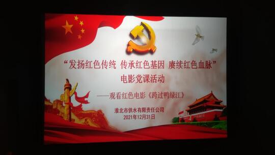 為進(jìn)一步把黨史學(xué)習(xí)教育走深走實,傳承革命精神,2021年12月31日,供水公司組織黨員開展“發(fā)揚紅色傳統(tǒng),傳承紅色基因,賡續(xù)紅色血脈”電影黨課活動,集中觀看紅色電影《跨過鴨綠江》。