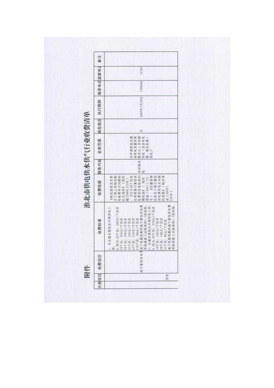 關(guān)于淮北市供電供水供氣行業(yè)收費項目目錄清單公示的通知