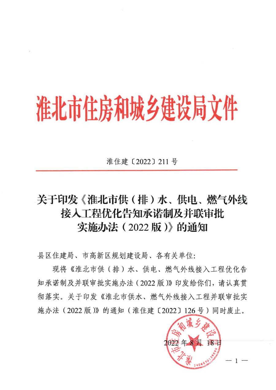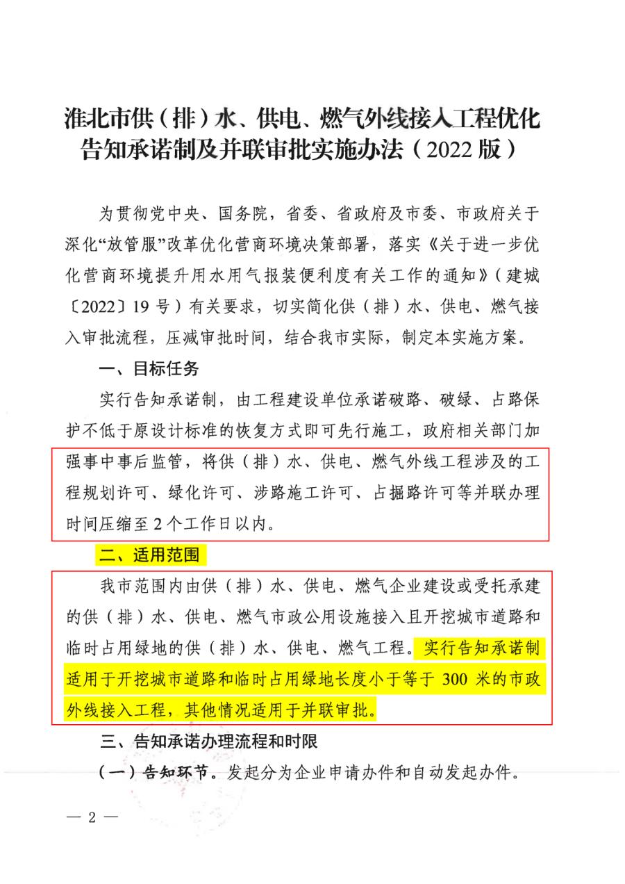 淮北市供(排)水、供電、燃氣外線接入工程優(yōu)化告知承諾制及并聯(lián)審批實施辦法(2022版)