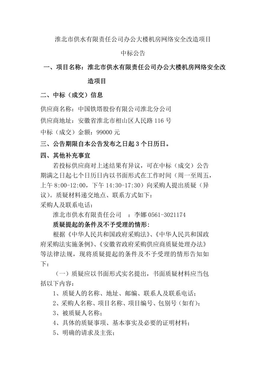 網(wǎng)絡(luò)安全改造中標(biāo)公告
