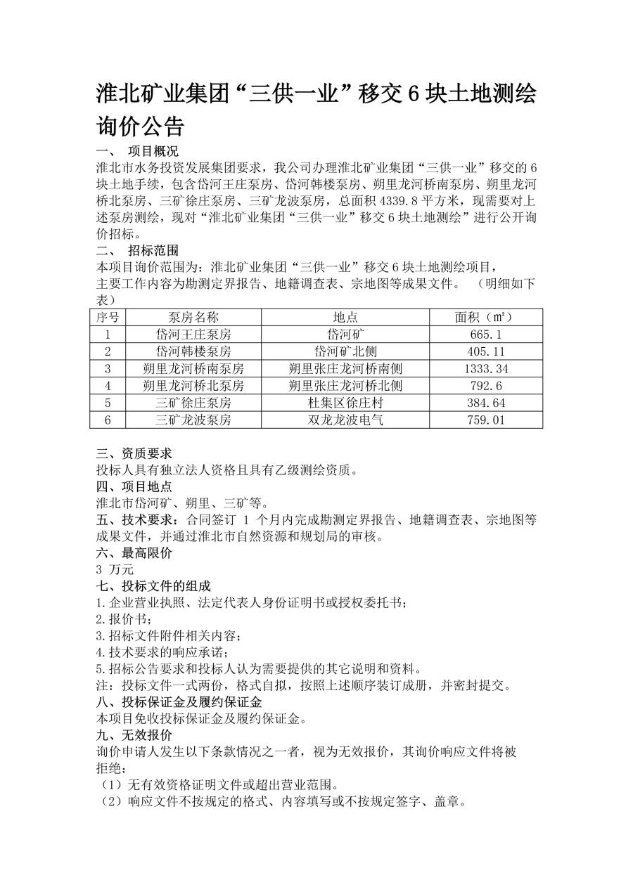 淮北礦業(yè)集團(tuán)“三供一業(yè)”移交6塊土地測繪詢價(jià)公告