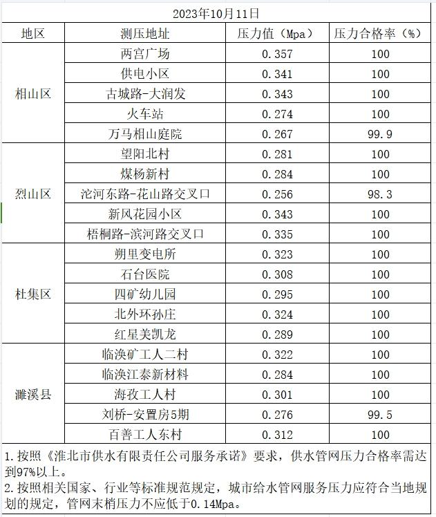 2023年10月11日水壓信息公開