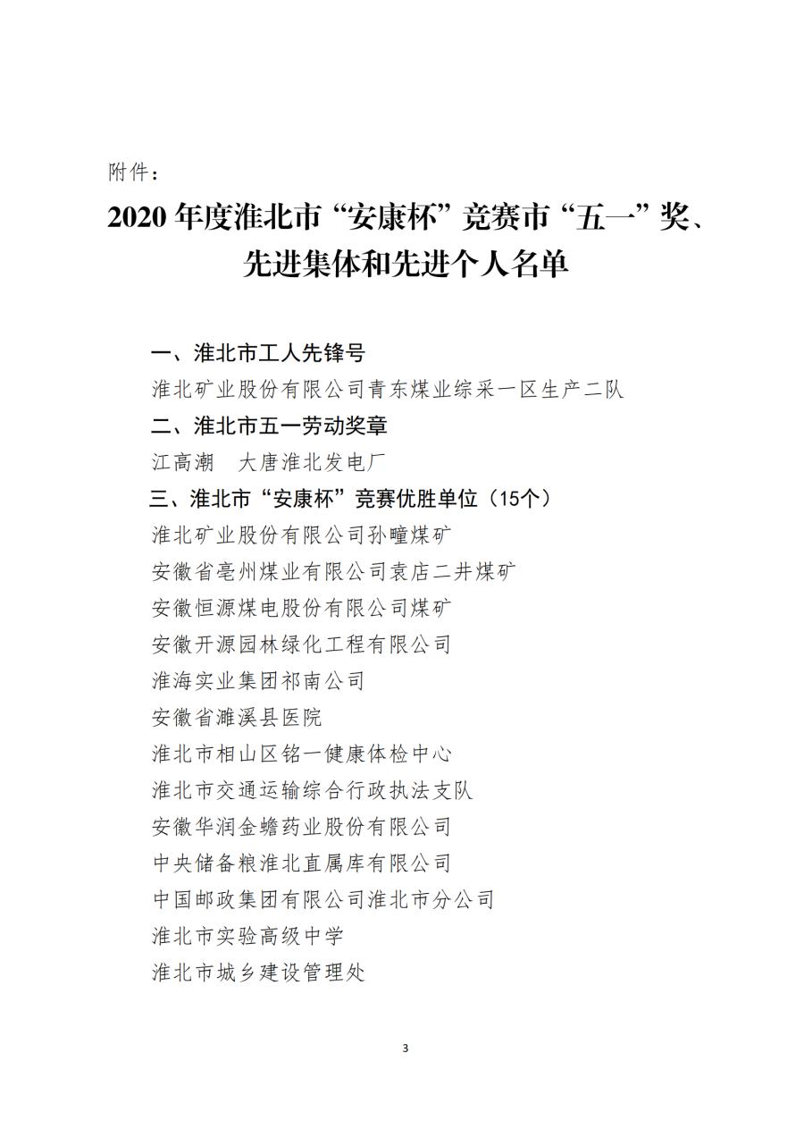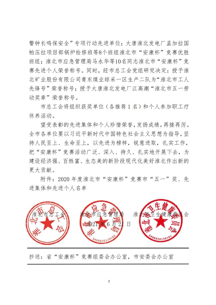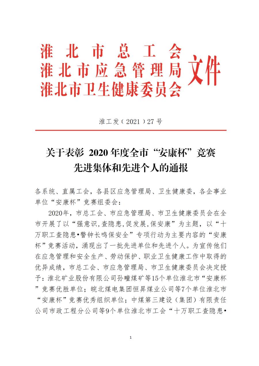 關(guān)于表彰 2020 年度全市“安康杯”競賽 先進集體和先進個人的通報