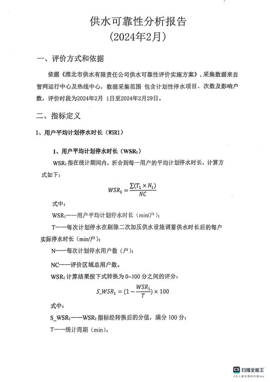供水可靠性分析報告2月
