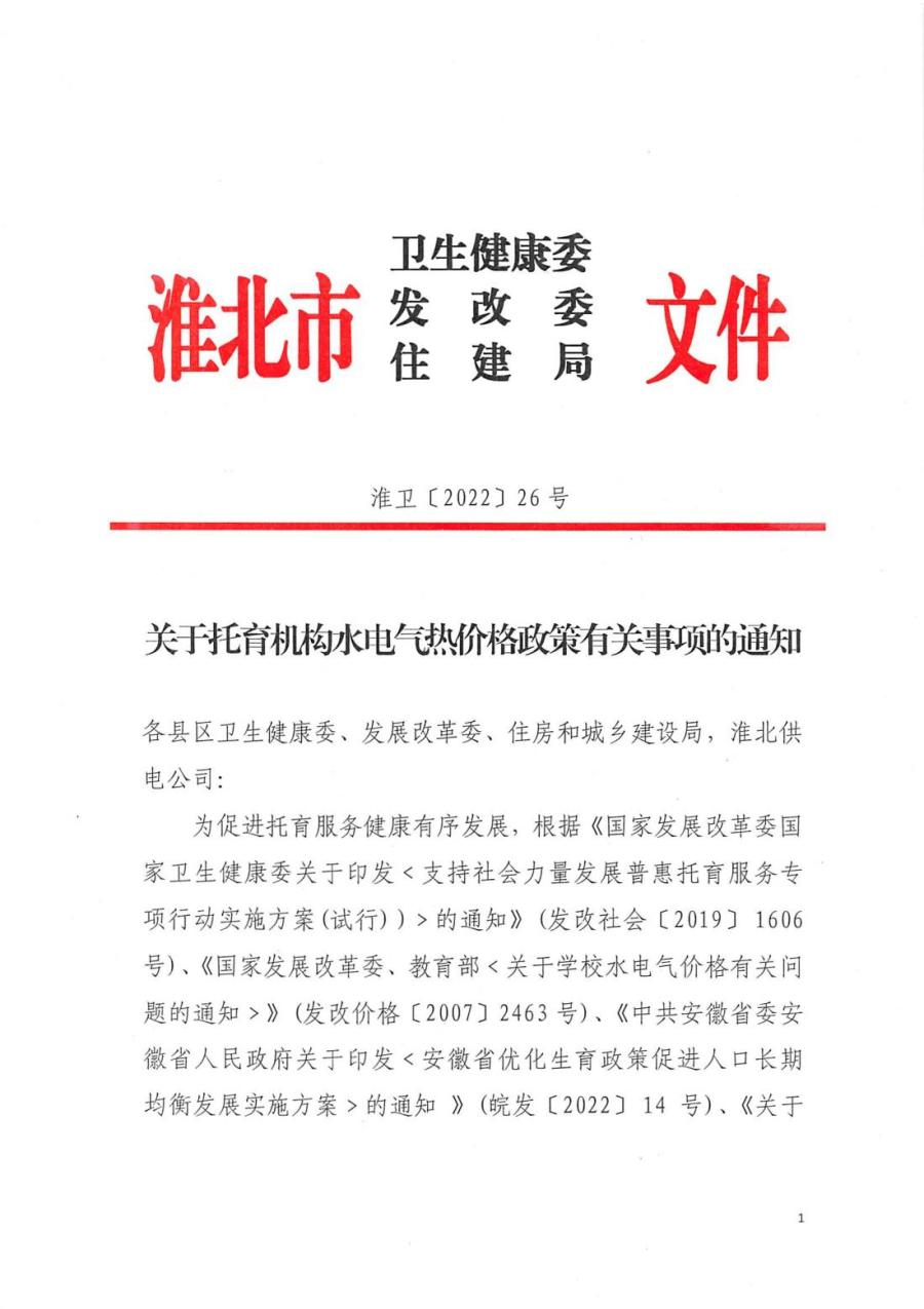 關(guān)于托育機(jī)構(gòu)水電氣熱價(jià)格政策有關(guān)事項(xiàng)的通知