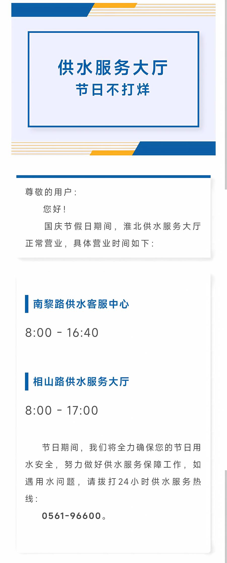 供水服務(wù)大廳國(guó)慶假期不打烊