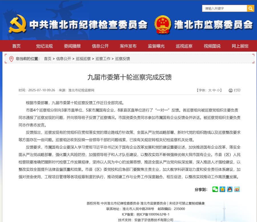 轉發(fā):九屆市委第十輪巡查完成反饋