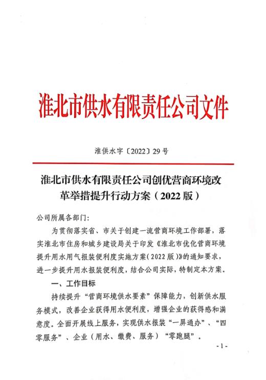 淮北市供水有限責(zé)任公司創(chuàng)優(yōu)營商環(huán)境改革舉措提升行動方案2022版